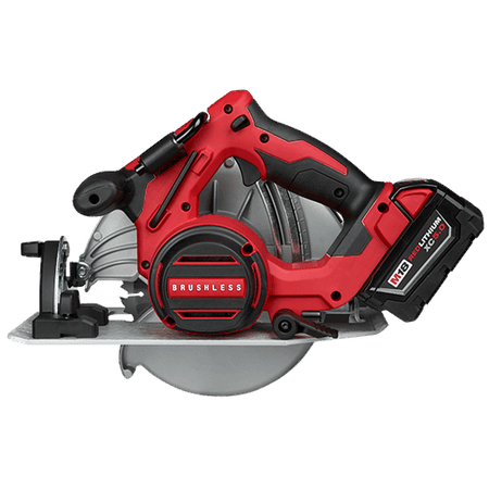 M18™ Brushless 7-1/4" Circular Saw delivers up to 40% more power than circular saws with brushed motors while providing up to 30% more run-time. The Milwaukee® built motor, REDLINK™ electronics and REDLITHIUM™ XC5.0 battery provide more efficient power delivery, more power and fewer trips to the charger. With 5,000 RPM the 2631 provides smooth cutting, and at only 9.0 lbs, it is lighter than most corded saws. The 7-1/4” Brushless Circular Saw also features an integrated rafter hook, magnesium guards, an aluminum shoe and LED light.