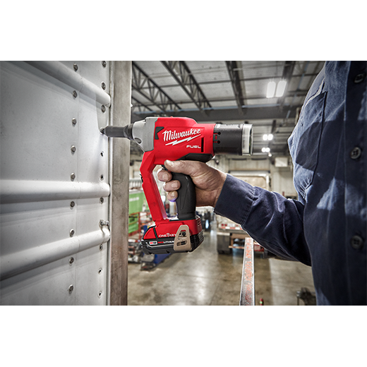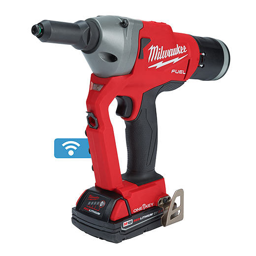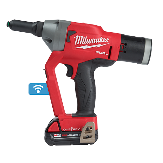 Our M18 FUEL™ ¼” Blind Rivet Tool w/ ONE-KEY™ is the fastest cordless rivet tool. It eliminates the need for hoses and compressors while delivering up to 3X longer life than other cordless riveters. This rivet gun significantly increases productivity, installing rivets up to 50% faster than cordless competitors. The premium steel alloy 3-jaw design delivers more work between jaw changes. While lightweight, this Milwaukee rivet gun was designed to withstand harsh shop or assembly plant environments, manufactured with an all-metal gearcase, impact strength plastics, and protective over-mold. The POWERSTATE™ Brushless Motor delivers 4,500 lbs. (20kN) of pulling force for high strength blind rivets in all materials. This rivet tool pulls up to 900 3/16” aluminum or 500 1/4” aluminum blind rivets on one charge with an M18™ REDLITHIUM™ CP2.0 battery. M18™ REDLITHIUM™ Battery Packs fit M18™ tools, providing you with more work per charge and more work over the battery life. REDLINK PLUS™ Intelligence ensures maximum performance and protects the rivet tool and battery against overloads, over-heating, and over-discharge. The MILWAUKEE® M18 FUEL™ ¼” Blind Rivet Tool with ONE-KEY™ compatibility, allowing you to track and manage your tool.
