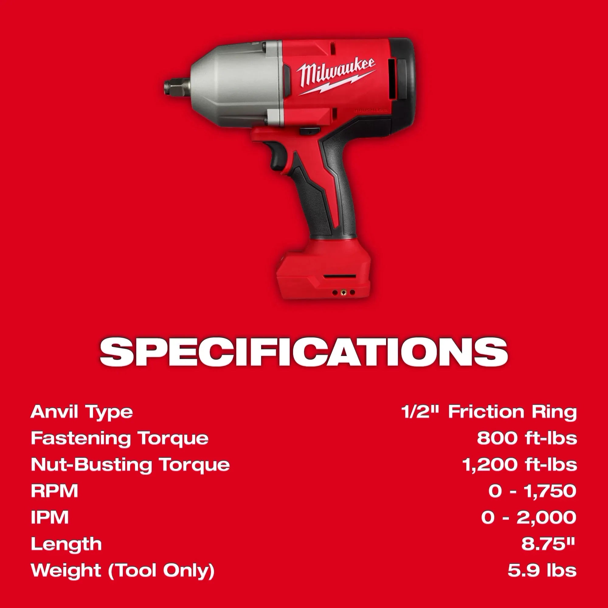 Milwaukee 2666-20, M18™ Brushless 1/2" High Torque Impact Wrench w/ Friction Ring