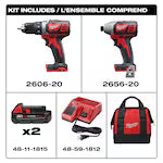 The 2691-22 M18 Cordless 2-Tool Combo Kit includes the M18 Compact Driver (2606-20) and the M18 1/4" Hex Impact Driver (2656-20). The M18 Cordless LITHIUM-ION System's patented technologies and electronics, innovative motor design, and superior ergonomics provide the most efficient blend of power, weight and performance in the industry. Powered by RED LITHIUM, the M18 cordless LITHIUM-ION system delivers more torque, more power, and longer run-time than the competition.