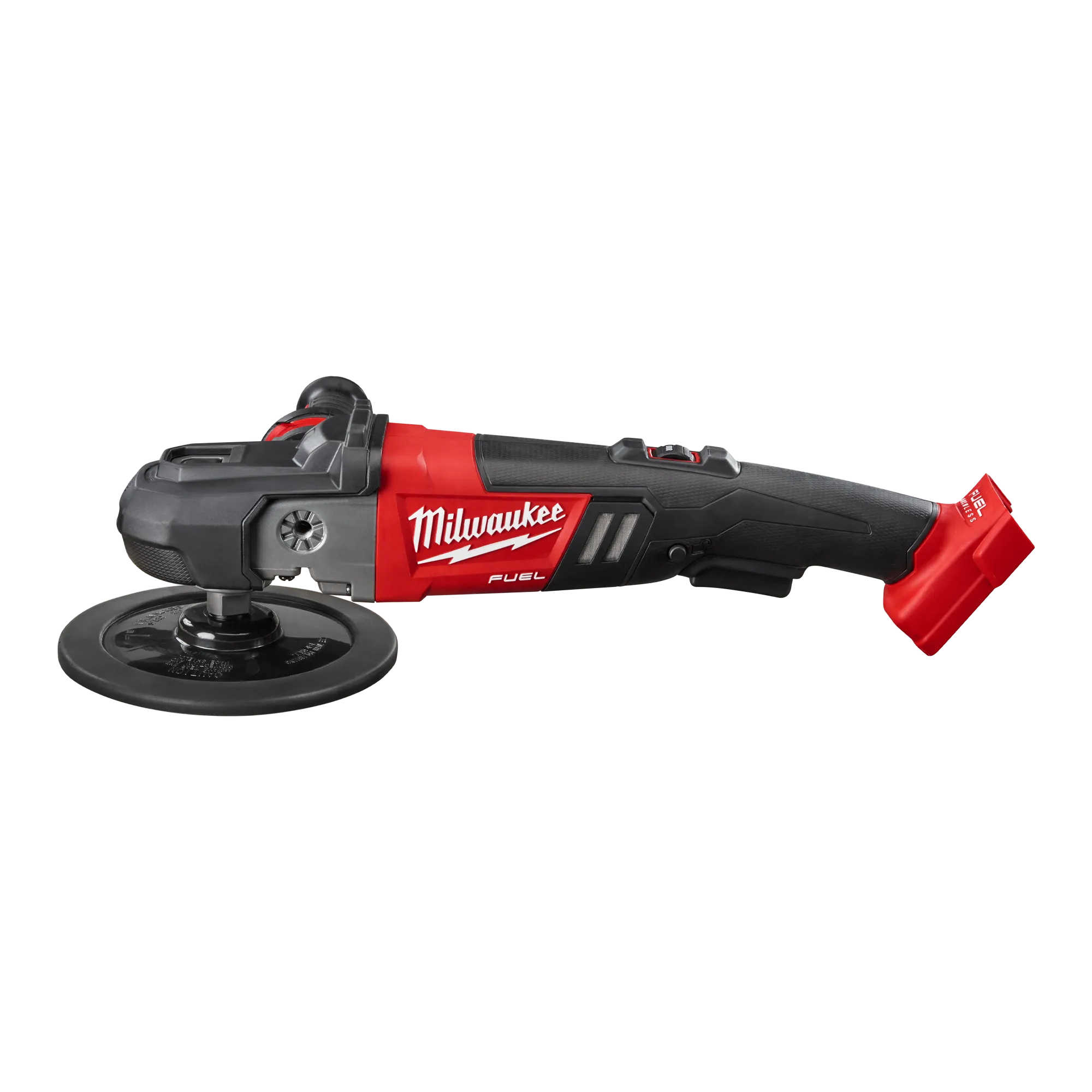 The M18 FUEL™ 7" Variable Speed Polisher is the world’s first cordless full-size rotary polisher. By harnessing the power, performance and run-time of M18 FUEL™ technology, this tool delivers corded performance that allows users to power through the most demanding applications. At more than 1 lb. lighter than corded, and the ability to deliver total control through a variable speed dial and trigger, the new M18 FUEL™ Polisher frees users from the extra work, distractions, paint damage, and inconvenience caused by cords. Paired with M18 XC5.0 batteries, the M18 FUEL™ Polisher can complete a full size car on one charge when working on moderate to good paint. The M18 FUEL™ Polisher is equipped with a rubber over mold front housing to protect the paint from scratches in use as well as a removable dust cover to protect the motor and electronics from wool fibers and residue. The new tool is designed to distribute more of its weight over the pad, providing natural pressure on the surface area and more.