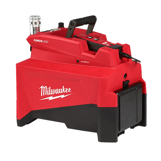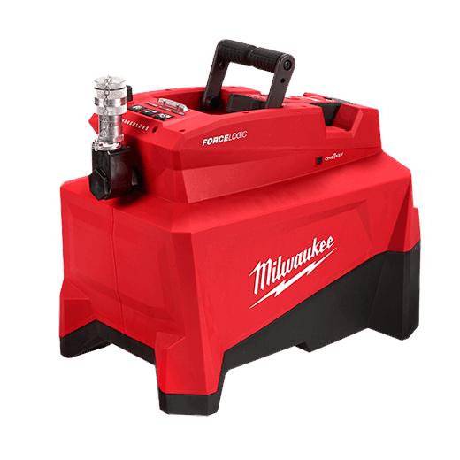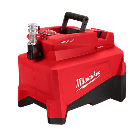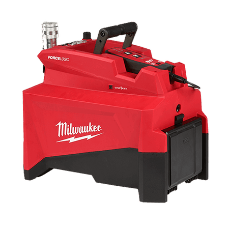 Our M18™ FORCE LOGIC™ 10,000psi Hydraulic Pump Kit is the Easiest Way to Power Hydraulics. The cordless hydraulic pump is designed to be fully compatible with all existing 10,000psi rated hydraulic hoses and heads, fundamentally changing the way you install transmission lines. The hydraulic pump delivers the easiest set-up and is up to 80% smaller and up to 75lbs lighter than gas units, allowing you to easily carry it without assistance. Utilizing the available bucket hanger attachment creates a stable, level operating position that allows you to maximize the limited available space in buckets and baskets. The high-pressure hydraulic pump provides you with 3X the flow rate of other cordless competition. The cordless hydraulic pump has 24-second cycle times and up to 60 presses on a single battery on 1590 ACSR connectors, providing you with gas-like performance. Three modes of operation give you the flexibility to modify the pump's operation to your specific application. Wireless Mode allows you to create a physical air gap between an operator and a potentially live electrical line when performing a remote cut. PFM™ (Predictive Force Monitoring) provides you with instant pressure verification via a green indicator. MILWAUKEE® ONE-KEY™ Technology enables you to store real-time cycle data, generate professional reports, view historical tool performance data and sync it all wirelessly to the cloud for easy access. The 10,000 PSI hydraulic pump features a POWERSTATE™ Brushless Motor, REDLINK™ Electronics, and REDLITHIUM™ Batteries providing you with Unmatched Reliability in the toughest environments. In addition to the pump, the kit includes one M18™ REDLITHIUM™ High Output™ HD12.0 Battery, and an M18™ & M12™ Rapid Charger.