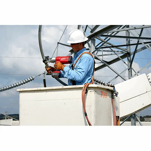 The M18™ FORCE LOGIC™ 1590 ACSR Cutter is the Simplest Way to Cut Transmission Lines. A patent pending jaw design enables opening with just two fingers, enhancing alignment while delivering easiest operation with Class 3 Gloves. The wire automatically closes the jaw, providing hands-free jaw closure and the easiest mid-span cuts. Fully balanced, only 11.75 lbs, and the fastest transmission cutter, the M18™ FORCE LOGIC™ 1590 ACSR Cutter delivers the best control while enhancing linemen’s productivity and reducing fatigue. The M18™ FORCE LOGIC™ 1590 ACSR Cutter features a fully enclosed high speed hydraulic pump, Brushless Motor, REDLINK™ Electronics and REDLITHIUM™ Battery delivering Ultimate Reliability in the toughest conditions. Featuring Milwaukee® ONE-KEY™ Technology, view tool usage, receive notifications for recommended maintenance and sync information wirelessly to the cloud. The kit includes M18™ REDLITHIUM™ XC 5.0 Extended Capacity Battery, M18™ & M12™ Multi-Voltage Charger, Inverter, Utility Bag and Carabineer.