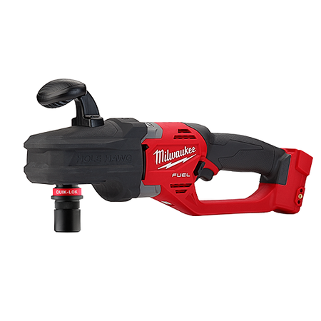 Our M18 FUEL™ HOLE HAWG® Right Angle Drill w/ QUIK-LOK™ delivers the next generation of right-angle drill performance providing electricians with the fastest rough-ins, lightest right-angle drill, and the run time to complete up to 220 7/8” holes per charge. We’ve redesigned our HOLE HAWG® Right Angle Drill with an upgraded POWERSTATE™ Brushless Motor and enhanced REDLINK PLUS™ Intelligence electronics. This next generation of the M18 FUEL™ HOLE HAWG® delivers you increased power and speed to complete the fastest rough-ins in the industry, without compromising on the lightweight or compact size that make this tool the ultimate right angle drill for electricians. Our QUIK-LOK™ Chuck attachment system allows for quick keyless, one-handed bit changes. The QUIK-LOK™ Chuck is compatible with most auger bits, self-feed bits, and hole saws with flat or groove 7/16” hex shanks. When you pair the new M18 FUEL™ HOLE HAWG® with our M18™ REDLITHIUM™ HIGH OUTPUT™ 6.0AH Batteries (sold separately) it can drill up to 220 7/8"" holes on a single charge to and increase productivity and eliminate downtime.