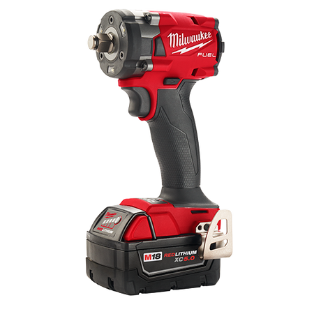 Our M18 FUEL™ 1/2" Compact Impact Wrench w/ Friction Ring Kit is the most compact in its class, delivering our users the most access in tight spaces, up to 250 ft-lbs of nut-busting torque, and maximum workspace visibility. Our battery-powered impact wrench measures only 4.9" in length with a POWERSTATE™ Brushless motor to provide the power to remove stubborn fasteners, even in confined spaces. Our 1/2" compact impact wrench has tri-LEDs that surround the anvil to deliver brighter light with fewer shadows. 4-Mode DRIVE CONTROL™ offers our users greater precision with a range of pre-set RPM and IPM levels, selectable from a single button on the tool. By selecting Mode 4, AUTO SHUT-OFF™ control applies no more than 20 ft-lbs of torque for hand-tight fastening applications to prevent overtightening. Mode 4 also features Bolt Removal Control that delivers full torque output, then decreases RPMs once the bolt is loosened to prevent fastener drops. Our REDLINK PLUS™ Intelligence electronics make these controls possible while ensuring maximum performance, protecting the tool against overloads, over-heating, and over-discharge. Our M18 REDLITHIUM™ XC5.0 Extended Capacity Resistant Battery Packs included provide increased protection against oils, greases, and solvents.