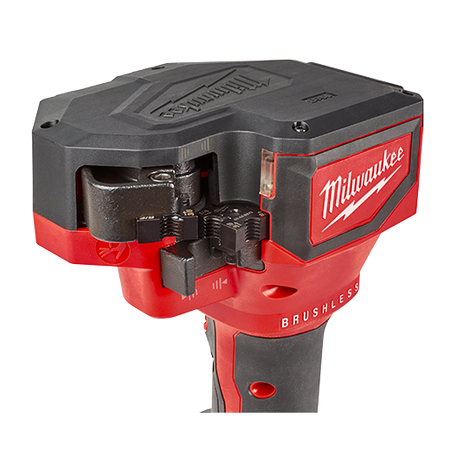 Our M18™ Brushless Threaded Rod Cutter Kit is Milwaukee's dedicated solution for cutting the most common threaded rod sizes on the job site, including coarse 1/4", 3/8" and 1/2" mild steel to 1/4" and 3/8" stainless steel. The cordless threaded rod cutter is powered by a brushless motor and delivers 400+ cuts while powered by an M18™ REDLITHIUM™ 2.0Ah Battery. The four-sided cutting dies allow you to cut multiple sizes of threaded rod on one tool by simply rotating the dies. The all thread cutter has the clearest line of sight and delivers clean, burr-free cuts enabling you to thread a nut on by hand without having to file down the ends. The rod cutter features optimized blade geometry and cut speed to prevent chips and sparks while cutting. It has auto jaw opening allowing you to perform fast, repetitive cuts while a reverse button helps prevent unintended cuts. Its centered grip provides the best balance for one-handed overhead trims, while the flat horizontal design provides you with a stable surface for benchtop cuts. The Milwaukee Threaded Rod Cutter kit includes one M18™ REDLITHIUM™ 2.0Ah Battery, a multi-voltage charger, and a carrying case.