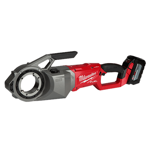 Our M18 FUEL™ Pipe Threader w/ ONE-KEY™ is the industry’s first cordless pipe threader, revolutionizing the pipe threading process. The cordless pipe threader features AUTOSTOP™ technology that senses severe kickback and automatically shuts the tool off. It also has a die head lock preventing die head ejection and a side handle to eliminate the need for you to hold the spinning die head when starting threads. The portable pipe threader delivers unmatched tool control and functionality and allows you to thread faster than the corded competition. Featuring a multi-speed selector, this powerful pipe threader threads faster than corded competitors, maximizing your productivity without compromising thread quality. Our M18™ REDLITHIUM™ HIGH OUTPUT™ HD12.0 battery delivers unmatched run-time in all applications and gives you the power to thread up to 2” black iron pipe, stainless steel, and rigid metal conduit (RMC). The handheld pipe threader is compatible with ONE-KEY™ Technology and is the industry's first pipe threader that wirelessly connects to a smartphone to track the tool's location, manage it in inventory, and lock the tool out for added security and protection to your investment. In addition to the threader, the kit includes two M18™ REDLITHIUM™ HIGH OUTPUT™ HD12.0 Battery Packs, an M18™/M12™ Rapid Charger, a Threading Support Arm, and a Carrying Case.