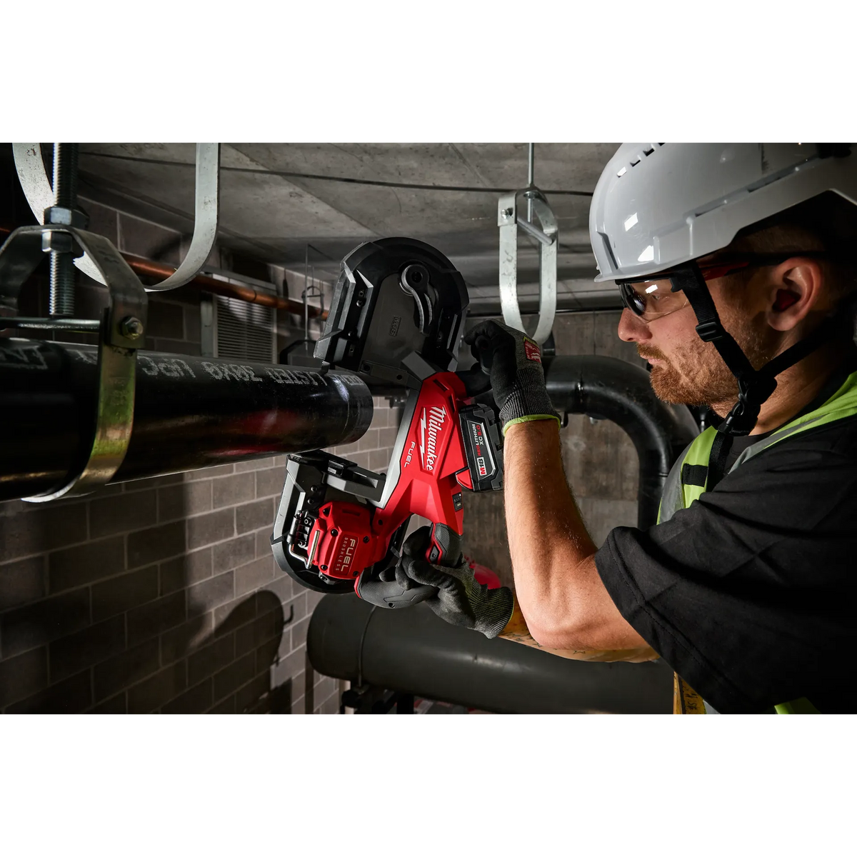 Milwaukee's M18 FUEL Deep Cut Band Saw delivers user-demanded performance with the ability to cut faster on a 4" Black Iron Pipe than competitors. Also being lightest in its class, this Band Saw provides an overall better cutting experience. Milwaukee's cordless Deep Cut Band Saw provides users with up to 78 cuts per charge, eliminating multiple trips to the charger onsite. The POWERSTATE brushless motor delivers maximum power, and 550 sfpm to remove material faster and increase productivity. This Band Saw is supplied with Variable Speed Mode Select, and a feathering trigger to allow for control over the speed of cut on thicker metals. A tool-free adjustable shoe, to help guide the user through a straighter cut, and an LED Worklight to illuminate their application. This Band Saw is equipped with features to enhance the control of their cut while maximizing their cutting experience throughout the day.