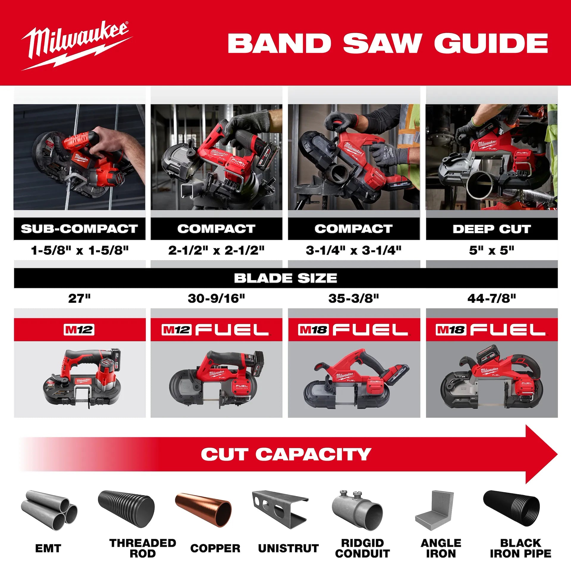 - POWERSTATE Brushless Motor: Built for the M18 FUEL Deep Cut Band Saw delivers 550 SFPM to provide the power needed to compete on the toughest applications.