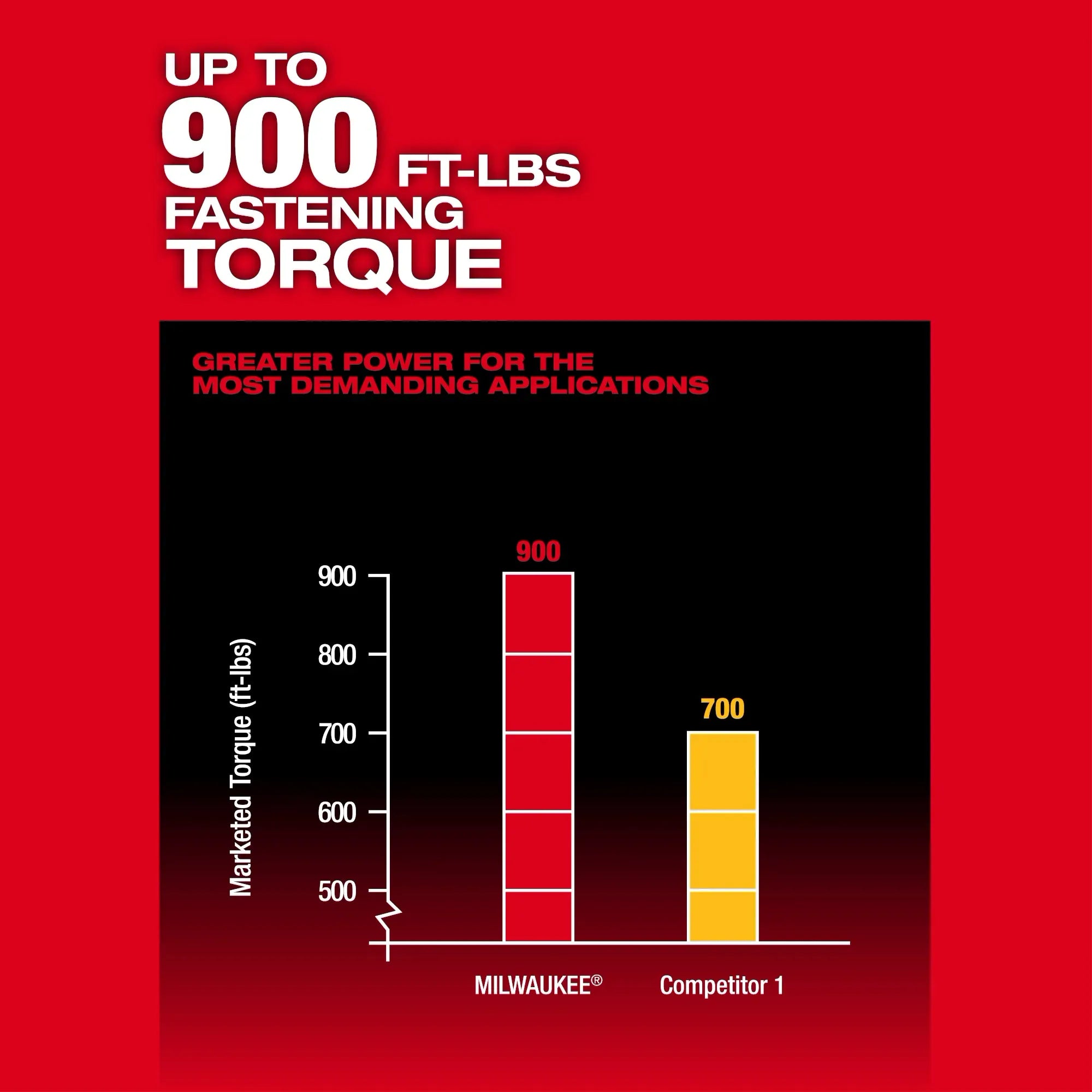 - POWERSTATE™ Brushless Motor delivers up to 900 ft-lbs of Fastening Torque & 1,100 ft-lbs of Nut-Busting Torque