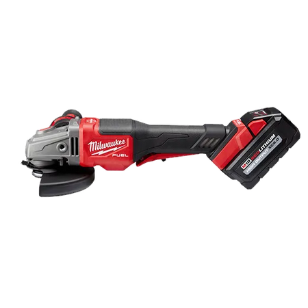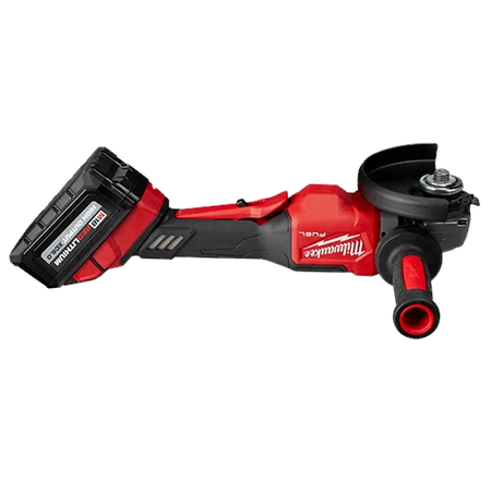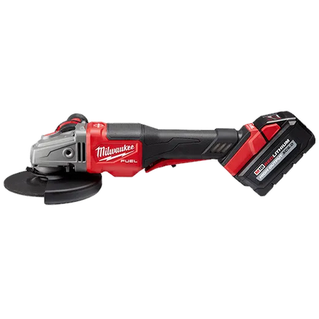 Our M18 FUEL™ 4-1/2” - 6” Braking Grinder, Paddle Switch, No-Lock is our highest performing small angle grinder. It generates the power of a 13A corded grinder, brakes all accessories under 3 seconds, and has 6” grinding capacity. The POWERSTATE™ Brushless Motor provides you with 9,000 RPM and the power equivalent of a 13A corded grinder, delivering industry-leading performance. REDLINK PLUS™ Intelligence ensures maximum performance and protects your angle grinder from overload, overheating and over discharge. The Rapid Stop Brake feature stops all accessories in under 3 seconds. Providing you with high performance, advanced ergonomics and legendary durability, the M18 FUEL™ 4-1/2” - 6” Braking Grinder is designed to complete the toughest grinding, surface preparation and cutting applications with all 4-1/2” – 6” accessories. The M18™ REDLITHIUM™ HIGH OUTPUT™ XC6.0 Battery provides you with more material removed per charge and unmatched run-time in all applications. Tool-free accessory changes using the FIXTEC nut and tool-free guard adjustments mean you will experience less downtime as you work. The cordless angle grinder's grinding wheel is sold separately. The kit includes two M18™ REDLITHIUM™ HIGH OUTPUT™ XC6.0 Batteries.