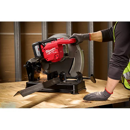 Our M18 FUEL™ 14" Abrasive Chop Saw offers you a portable solution while generating the same power as a 15A Corded Chop Saw. The MILWAUKEE® M18 FUEL™ 14" Abrasive Chop Saw utilizes a POWERSTATE™ Brushless Motor, providing 4,000RPM for consistent power and cut speed. REDLINK PLUS™ Intelligence ensures maximum performance and protection from overload, overheating, and over-discharge. When paired with the M18™ REDLITHIUM™ HIGH OUTPUT™ HD12.0 Battery (not included), the cordless chop saw provides up to 200 cuts per charge in 3-5/8" 20-Gauge Steel Stud. The RAPID STOP™ Blade Brake stops the blade within 3 seconds of trigger release. This portable chop saw offers a tool-free blade change and tool-free fence adjustment, making blade changes and fence movements a seamless process, saving you time. An overload indicator light coaches you into the optimal cutting speed.