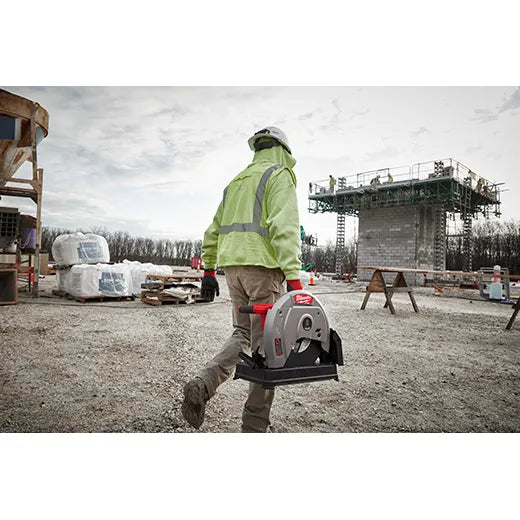 Our M18 FUEL™ 14" Abrasive Chop Saw Kit offers you a portable solution while generating the same power as a 15A Corded Chop Saw. The MILWAUKEE® M18 FUEL™ 14" Abrasive Chop Saw utilizes a POWERSTATE™ Brushless Motor, providing 4,000RPM for consistent power and cut speed. REDLINK PLUS™ Intelligence ensures maximum performance and protection from overload, overheating, and over-discharge. When paired with the M18 REDLITHIUM™ HIGH OUTPUT™ HD12.0 Battery, the cordless chop saw provides up to 200 cuts per charge in 3-5/8" 20-Gauge Steel Stud. The RAPID STOP™ Blade Brake stops the blade within 3 seconds of trigger release. This portable cop saw offers a tool-free blade change and tool-free fence adjustment, making blade changes and fence movements a seamless process, saving you time. An overload indicator light coaches you into the optimal cutting speed.