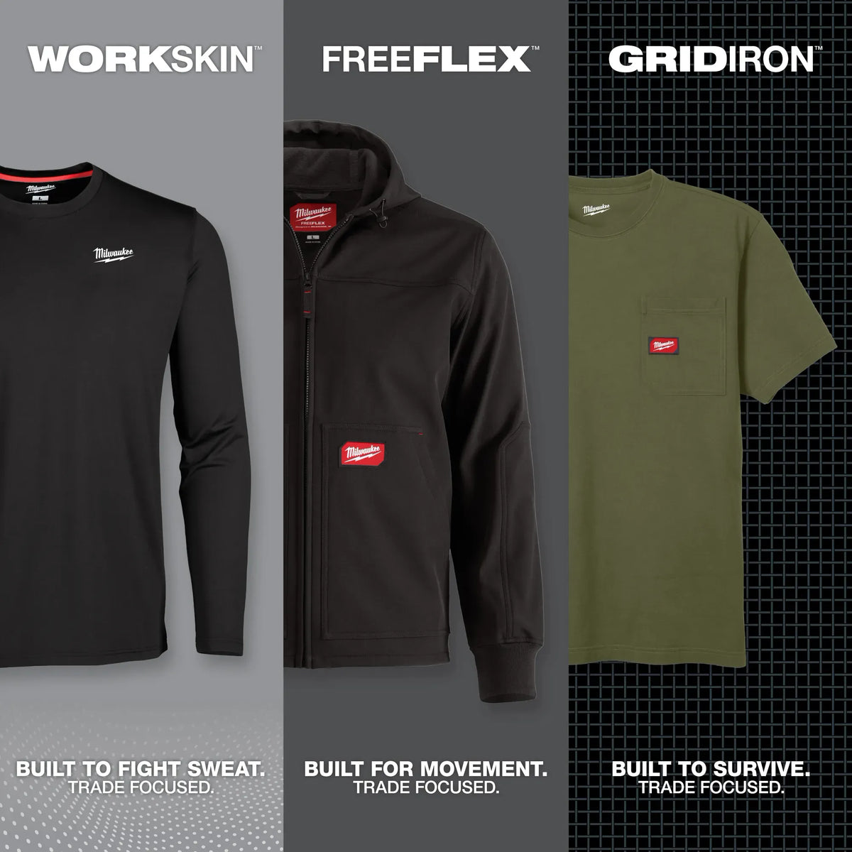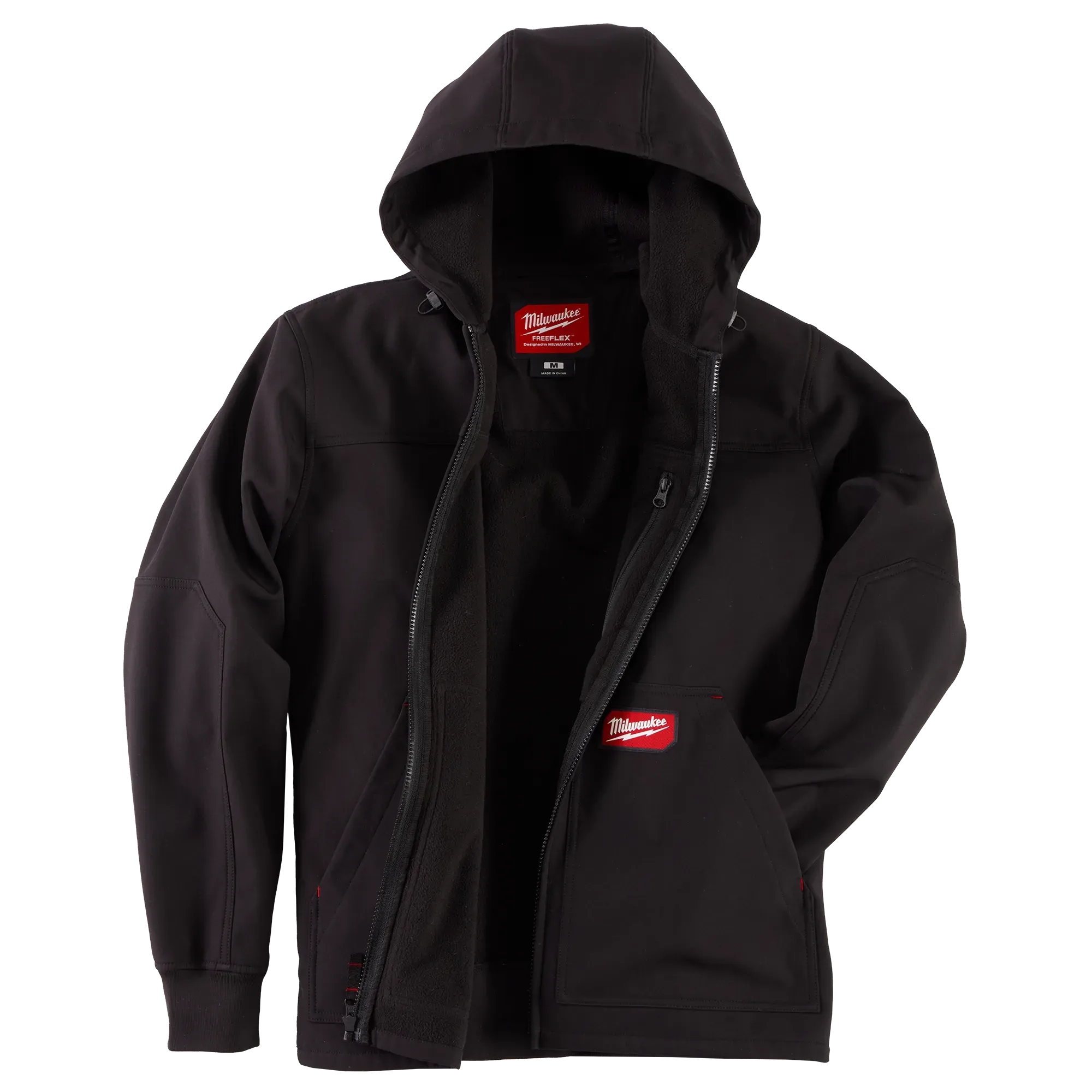 Part of the MILWAUKEE® FREEFLEX™ Collection, our Softshell Jacket is BUILT FOR MOVEMENT. Constructed from durable, lightweight stretch fabrics, the FREEFLEX™ Softshell Hooded Jacket delivers unrestricted movement when layering on the job from fall to spring. The Softshell Jacket is designed with a brushed fleece interior, wind and water-resistant shell, and tough elastic cuffs to outlast the job and keep you comfortable all day. Our Milwaukee® FREEFLEX™ products are developed in collaboration with feedback from users across the trades through continuous jobsite research.