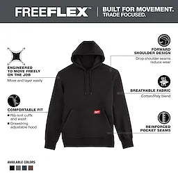 Part of the MILWAUKEE® FREEFLEX™ Collection, our Midweight Pullover Hoodie is BUILT FOR MOVEMENT. Our Midweight Pullover Hoodie is EASY TO LAYER and MORE BREATHABLE. Our midweight hoodie offers seasonal versatility while delivering on a trade focused design with drop shoulder seams and reinforced pocket seams. The comfortable fit and design allows our users to move freely and easily on the job. Choose from Black, Brown, Gray, or Blue colors, available in sizes small to 3XL.