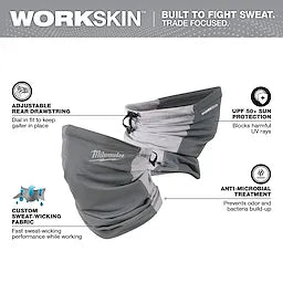 Part of the MILWAUKEE® WORKSKIN™ Collection, our Performance Neck Gaiter is BUILT TO FIGHT SWEAT. Our WORKSKIN™ Performance Neck Gaiter wicks away moisture with anti-odor treated fabric so you can stay dry while working. Our breathable neck gaiter with 5+ ways to wear is designed to DRY FAST and STAY COOL for working in warm and hot conditions. The MILWAUKEE® WORKSKIN™ Performance Neck Gaiter offers UPF 50 protection to block harmful UV rays. Our adjustable neck gaiter has a rear drawstring you can use to customize for your comfort.