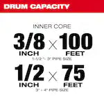 The Drum w/ Anchor Cable for M18 Drum Machine (47-53-2817) gives drain technicians increased versatility to have multiple sized cables for tackling clogs in 1-1/2”-4” drain lines. The Drum w/ Anchor Cable for M18 Drum Machine can hold up to 100’ of 3/8” Inner Core Cable and up to 75’ of 1/2” Inner Core Cable. The 3/8" cable is best for use on 1-1/2"- 3" drain lines and 1/2" cable is best for use on 3-4" drain lines. Our Drum w/ Anchor Cable for M18 Drum Machine is also compatible with our CABLE DRIVE™ Assembly (47-53-2816) that allows you to automatically feed and retract cable up to 15-20 feet per minute. Cable sizes available are 3/8" x 75' (48-53-2776), 3/8" x 100' (48-53-2777) and 1/2" x 75' (48-53-2778).