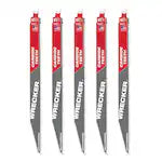 Milwaukee 48-00-5543, 12" 6 TPI THE WRECKER with Carbide Teeth SAWZALL Blade (5/pkg)