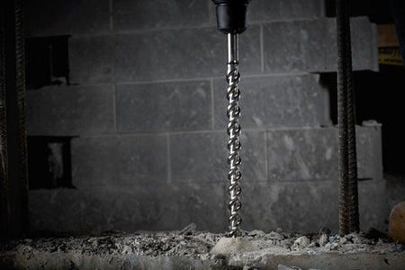 Milwaukee® SDS-Max drill bits provide faster drilling speeds, increased life, and more cordless efficiency. Breaker point pulverize the material leading to up to 20% faster drilling speeds. Rebar guards protect the bit when hitting hard aggregate and rebar leading to longer life. Variable flutes remove the dust out of the hole more efficiently resulting in up to 15% more holes per battery charge. Wide flute entrances lead to faster drilling speeds, while reinforced flutes prevent bit breakage, rendering increased durability in tough concrete applications. The centering tip allows for exact spot drilling. All SDS-Max drill bits meet the ANSI specification for drilling holes for anchor applications and include wear mark indicator when signifying when the bit no longer meets the ANSI spec.