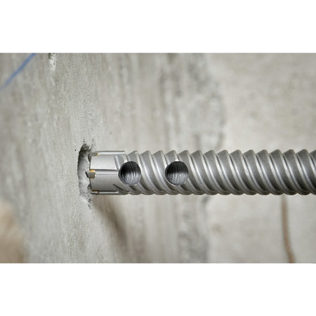 The MILWAUKEE® SDS-Plus Rebar Cutters are the toughest in rebar, delivering up to 3x life compared to competitive rebar cutters. Designed with precision ground carbide, these drill bits shred through rebar providing up to 10x faster drilling speeds vs. 4-cutter drill bits. Milwaukee SDS Plus Rebar Cutters are equipped with HAMMER GUARD protective shanks, preventing carbide teeth destruction from accidental use in rotary hammer mode, saving time and money. Deep debris channels provide the fastest rebar shard removal while double ejection slots allow for easy rebar slug removal. Available in sizes 3/8 - 1-1/2, Milwaukee SDS Plus Rebar Cutters are the optimal solution for drilling embedded rebar for corded and cordless SDS-Plus rotary hammers.