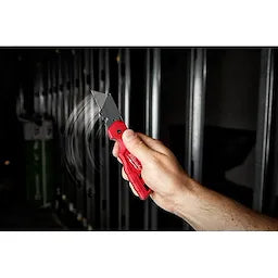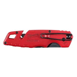 Our FASTBACK™ Folding Utility Knife features a press and flip mechanism for easy, one-handed opening. The MILWAUKEE® FASTBACK™ Folding Utility Knife allows you to make quick, tool-free blade changes for maximum jobsite efficiency. The utility knife has an all metal body, an integrated gut hook and wire stripper for increased versatility. The folding utility knife is equipped with a durable wire belt clip to reduce pocket tearing and a blade holder designed for scoring. The folding utility knife has a metal extension that prevents accidental blade removal and a lanyard hole for convenient tethering.