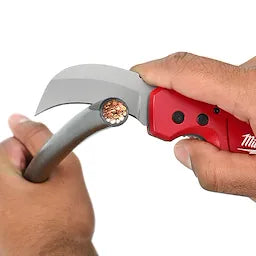The Milwaukee® FASTBACK™ Hawk Bill Folding Knife features 1-handed press-and-flip operation for 3X faster opening. Maximize productivity on the jobsite with the folding knife that easily activates with one hand. The curved “hawk” blade engages the material for easy pull cuts or slicing around the edge of cable to remove insulation. The stainless steel blade has a sharp cutting edge that's resharpenable. The slim, lightweight body takes up less space but stands up to jobsite abuse. A reversible wire-form belt clip makes it easy for you to store the knife on a belt or in a pocket without fraying the fabric. Backed by a limited lifetime warranty, this new FASTBACK knife confirms Milwaukee’s commitment to best-in-class durability and innovative solutions for increased productivity.