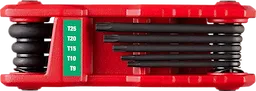 Our 8-Key TORX® Folding Hex Key Sets feature the easiest access keys on the market. The access zones on the handle and a key shelf to elevate the keys make it quicker to grab the needed key. The handle has long-lasting, high contrast markings to help in finding the right size key to fold out. The full metal body construction withstands high torque and extends the life of the tool in the toughest jobsite conditions, while the shape of the handle is optimized for comfort. The keys rotate 270° for greater access and torque in tight spaces. The convenient folding set makes transportation and storage simple. The Milwaukee 8-Key TORX® Folding Hex Key Set is backed by Milwaukee’s Limited Lifetime Warranty.