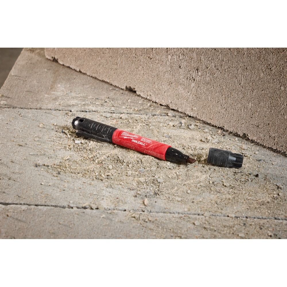The MILWAUKEE® INKZALL™ Double Sided Black Jobsite Marker with Fine Point and Chisel Tips is designed with a dual tip for versatile use. The durable marker tips can withstand writing on rough surfaces and write through dusty, wet, or oily contamination. Quick-dry ink avoids smearing, while a 72-hour off cap extends the life of the marker. For added user convenience, the Double Sided INKZALL™ marker features a hard hat/helmet clip for easy storage and access. INKZALL™ markers confirm Milwaukee’s commitment to best-in-class durability and its relentless mission to provide innovative solutions to the end user.