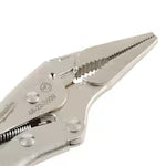 Our 9-inch TORQUE LOCK™ Long Nose Locking Pliers provides you with faster tool setup and more locking force. The locking pliers' unique thumb screw provides you with a more convenient geometry for hand force while providing clearance to generate more torque with the screwdriver through-hole design. The pliers' hardened jaws give you increased gripping power and they are made of forged alloy steel for maximum durability, perfect for the toughest of job sites. The long nose pliers feature efficient and easy one-handed control release with ergonomic handles with an anti-pinch design. We stand behind our product and offer a MILWAUKEE® Limited Lifetime Warranty with all our locking tools.