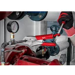 Our 12-inch TORQUE LOCK™ Large Jaw Locking Pliers provides faster tool setup and more locking force. The large jaw pliers maximizes pressure points for range of applications with an efficient, easy one-handed control release. The innovative thumb screw provides you with a more convenient geometry for hand force, while providing clearance to generate more torque with the unique screwdriver through-hole design. MILWAUKEE® TORQUE LOCK™ pliers have rust protection for increased tool life and ergonomic handles with an anti-pinch design. The large jaw pliers feature hardened jaws for increased gripping power and forged alloy steel for maximum durability for the toughest of jobsites. We offer a Limited Lifetime Warranty with all locking tools.