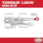 Milwaukee Torque Lock MAXBITE Locking Tools deliver 3X gripping force and provide faster tool setup to the professional tradesmen. The patent pending thumb screw provides the user with a more convenient geometry for hand force, while providing clearance to generate more torque with the unique screwdriver through-hole design. Featuring hardened jaws for increased gripping power and forged alloy steel for maximum durability, the Milwaukee 48-22-3610 is perfect for the toughest of jobsites. Milwaukee stands behind their product and offers a Limited Lifetime Warranty with all locking tools. The Milwaukee 48-22-3610 includes (1) 48-22-3610 10 in. Torque Lock MAXBITE Curved Jaw Locking Plier.