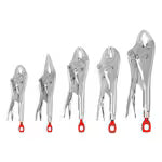 Our 5-Piece TORQUE LOCK™ Locking Tools provide you with a faster tool setup and more locking force for the professional tradesman. The unique thumb screw provides you with a more convenient geometry for hand force, while providing clearance to generate more torque with the screwdriver through-hole design. MILWAUKEE® TORQUE LOCK™ pliers kit features hardened jaws for more gripping power, and forged alloy steel for maximum durability, locking tools are made for the toughest applications and jobs. We stand behind our locking tools and back this TORQUE LOCK™ pliers kit with a limited lifetime guarantee.