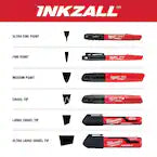 Milwaukee INKZALL Liquid Paint Markers were designed from the ground up to provide users with the best performance on tough jobsite surfaces. All INKZALL Liquid Paint Markers feature a durable acrylic nib that can write on the dirtiest, hottest and roughest of surfaces. Proprietary paint developed specifically for INKZALL Liquid Paint Markers can mark on surfaces up to 300F and dries in 10 seconds. For the most demanding environmental conditions, INKZALL Liquid Paint Markers provide the longest lasting marks that are both water and UV resistant.