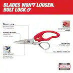 BLADES WON’T LOOSEN with Milwaukee’s BOLT LOCK design on the new electrician snips. All metal handles and comfortable grips give you the maximum leverage; a wire gullet prevents the blades from walking while making a cut.