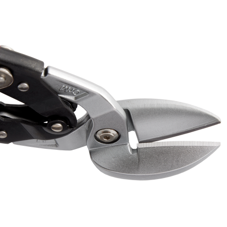 Our Right Cutting Offset Aviation Snips are built for long life and clean cuts. Forged blades with laser-hardened edges are durable and deliver long life. Sharp, serrated blades provide smooth and clean cuts. Our handles are designed to deliver easy, low-effort cutting. BOLT LOCK™ ensures the blades won't loosen and chrome plating provides rust protection. The color-coded handles allow for easy identification on the job. The metal lock secures the tool for storage and is easily operated with one hand. The offset model features a 45-degree offset handle for clearance over the cut material. These snips are ideal for making straight, left, or right cuts.