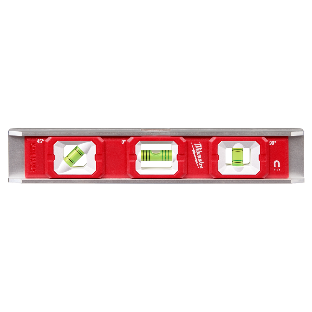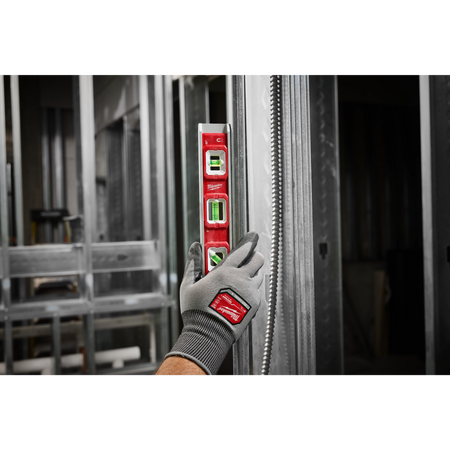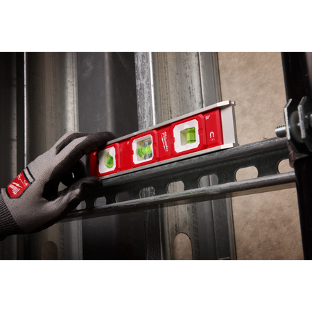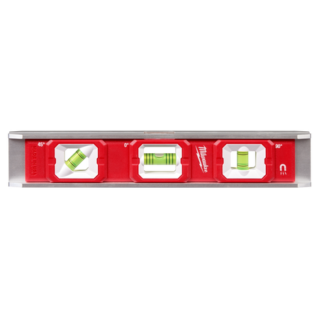 Milwaukee's 10” Torpedo Level has high contrast surrounds, which delivers more vial visibility when leveling surfaces or setting pitch in pipe. The level also has a durable aluminum frame helping protect it from drops and harsh jobsite conditions. The 3 rare earth magnets and V-grooves make working with conduit and metal material easier. The level has 3 vials to accurately measure 0°, 45°, and 90° when leveling surfaces such as trim, shelving, windows, and outlets. The Milwaukee 10” Torpedo Level is backed by a Limited Lifetime Warranty.