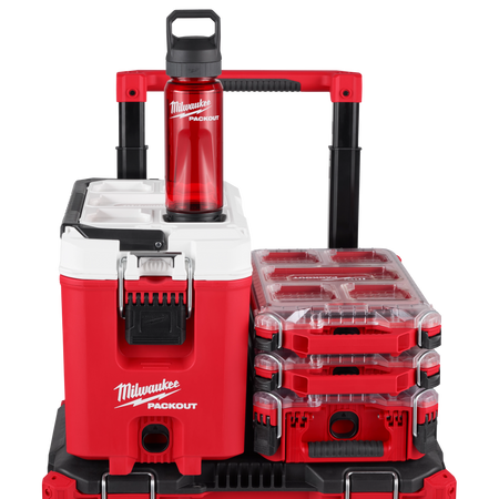 Our PACKOUT™ Bottles with Chug Lid features twist-to-lock PACKOUT™ Connectivity so you can attach your bottle to the top of PACKOUT™ solutions, allowing for secure drink storage on the jobsite. Each bottle comes with a leakproof chug lid to prevent spills while transporting PACKOUT™, and dishwasher safe for easy cleaning. The impact-resistant body is built and engineered to withstand the harshest jobsite environments. MILWAUKEE® PACKOUT™ is the industry's most versatile and durable modular storage system.