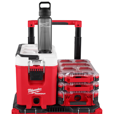 Our PACKOUT™ Bottles with Chug Lid features twist-to-lock PACKOUT™ Connectivity so you can attach your bottle to the top of PACKOUT™ solutions, allowing for secure drink storage on the jobsite. Each bottle comes with a leakproof chug lid to prevent spills while transporting PACKOUT™, and dishwasher safe for easy cleaning. The impact-resistant body is built and engineered to withstand the harshest jobsite environments. MILWAUKEE® PACKOUT™ is the industry's most versatile and durable modular storage system.