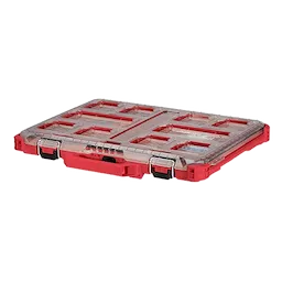 Part of the industry's most versatile and most durable modular storage system, the Milwaukee PACKOUT Low-Profile Organizer is constructed with impact resistant materials for jobsite durability and features an IP65 rated weather seal to keep out rain and jobsite debris. The interior contains 10 removable bins that feature removable bin dividers for increased storage capacity. No-travel bins seals prevent the bins contents from migrating between bins during transport.