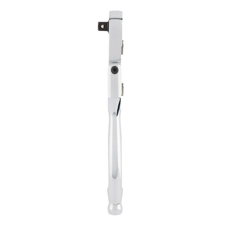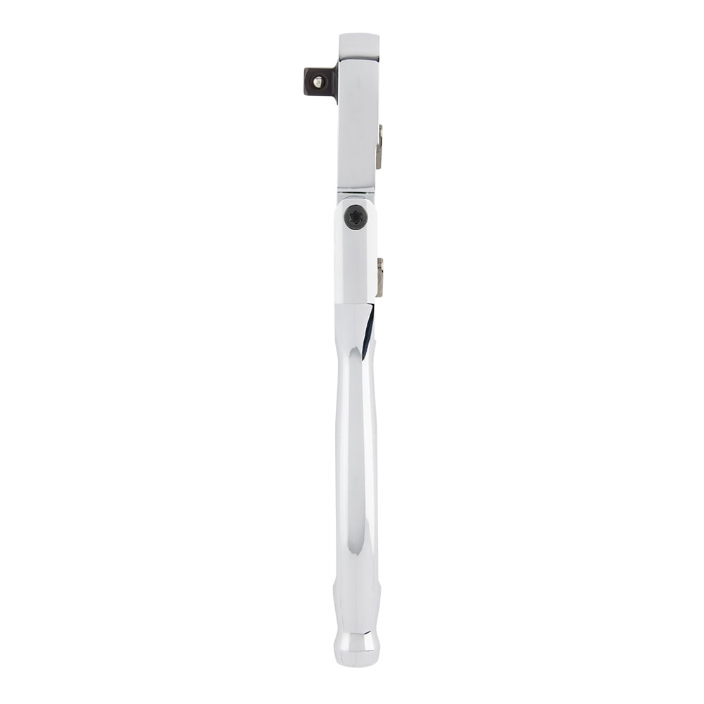 Our 3/8” Drive 9” Flex Head Ratchet with a 4⁰ arc swing provides you with better access and is more adaptable to working in spaces with different angles. The ratchet head can be locked into 9 unique positions or left unlocked for free movement during use. The slim profile head and flush directional and locking levers offer more accessibility in tight spaces. The all-chrome finish makes cleaning the MILWAUKEE® flex head ratchet easy. We back this ratchet with our Mechanics Hand Tools Lifetime Guarantee.