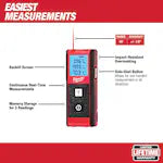 Milwaukee® 65’ Laser Distance Meters are designed to provide the easiest measurements from all orientations. Backlit screens offer maximum visibility in low light conditions. In addition, each tool includes memory storage for 3 readings and impact-resistant overmold for protection from tough jobsite conditions. Milwaukee® Laser Distance Meters also feature a side shot button for an easier, more ergonomic experience when measuring in all directions.