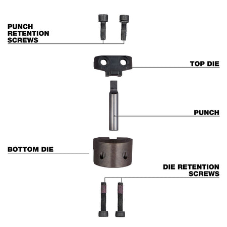 Our M18 FUEL™ Punch and Die Set is to be used with our M18 FUEL™ 10-Gauge Nibbler Bare Tool. The accessory punch and die is the portion of the tool that performs the cutting functionality and must be routinely replaced. This accessory is good for cutting thin sheet metal and corrugated materials.