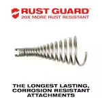 Milwaukee drain cables with rust guard set a new standard in the market for rust protection, maneuverability, and durability delivering up to 3X longer life. Traditional cables will oxidize, causing fragments of steel to erode off the cable, damaging the structural integrity. Through a proprietary plating process, rust guard plating delivers 20X more rust resistance, protecting against metal fatigue. A unique cable wind geometry provides stronger pull force and sustains shape. The smallest diameter connecting point and a solid polymer core provide the best maneuverability through the entire cable. All Milwaukee® drain cables are compatible with Milwaukee® drain machines and other professional drain cleaning machines, and backed by a 2-year warranty from defect or breakage.