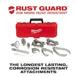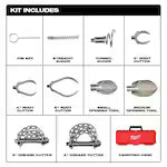 The MILWAUKEE ® 9-piece head attachment kit for 7/8" sectional cable includes all the tools needed to clear the most common clogs encountered. The durable steel construction and Rust Guard plating provides longer-lasting accessory heads. This pipe clearing tool kit includes 9 cable head attachments, a pin key, and carrying case. It is designed to work with 7/8" open wind sectional cable for the Milwaukee M18 FUEL sewer sectional machine with CABLE-DRIVE.