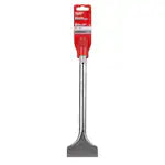 Milwaukee chisels are made from high grade, forged steel, providing up to 20% longer life. Scaling chisels are ideal of cleaning concrete and removing scale and rust. Additionally, scaling chisels can be used for cutting troughs and some asphalt. The widened tip design allows for faster surface material removal. This chisel is specifically designed for SDS Max rotary hammers and should be used in hammer only mode.