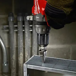 Milwaukee Step Drill Bits with JAM-FREE Performance feature a dual-flute design delivering up to 2X faster hole times, up to 4X longer life and up to 50% more holes per battery charge than competitors. Ideal for drilling small and large-diameter holes in steel and plastic, these bits are Optimized for Cordless Drills in High Speed. The Rapid Strike tip allows for a fast and accurate start that generates less heat, resulting in longer bit tip life.Black oxide coating also enhances durability, hole quality and bit life. For user convenience and accuracy, each bit has laser-engraved reference marks you can see while drilling. The 3-flat Secure-Grip shank ensures a solid connection with the drill chuck. The #2 Step Drill Bit has 6 hole sizes in 1/16" increments ranging from 3/16" to 1/2". Jam-Free Performance in high speed with most professional 18 volt cordless drills with lithium-ion battery technology.