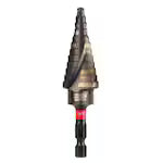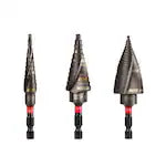 Our SHOCKWAVE™ Impact Duty™ Electrical Step Bits are engineered to deliver the most durable and fastest impact step bit hole drilling solution. Our step drill bits are made in the USA with global materials and give you best-in-class performance in impact drivers with the versatility to be used in drills. The ¼” hex shank has an optimized SHOCKZONE™ body providing you with the industry’s most durable shank, reducing early shank breaks. A Titanium Aluminum Nitride (TiAlN) coating helps deliver you 5x longer life, while the step drill bit's Rapid Strike™ tip and dual spiral flute produce 2x faster holes. Our step drill bit kit features the #1 1/8 - 1/2", #4 3/16 - 7/8", and #9 7/8" &1-1/8" step bits with laser engraving for a clear stop on size identification.