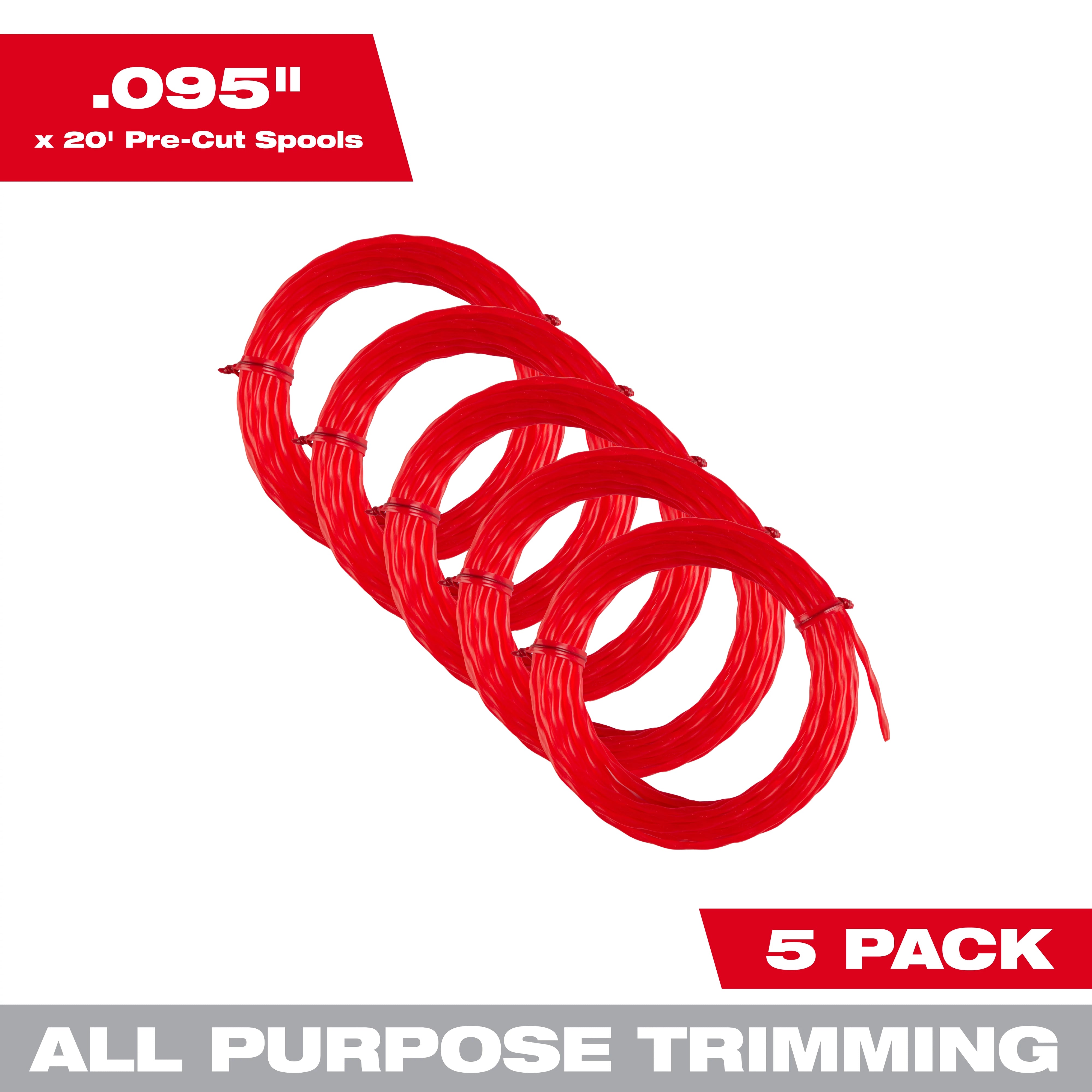 - Includes (5) 20 foot pre-cut spools of .095" line
