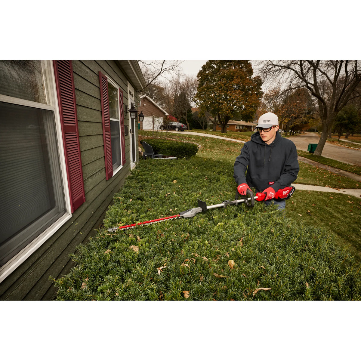 Our M18 FUEL™ QUIK-LOK™ Hedge Trimmer Attachment is powered by the M18 FUEL™ Power Head w/ QUIK-LOK™ and is compatible with our split boom M18 FUEL™ QUIK-LOK™ Attachment System. This Hedge Trimmer Attachment clears more branches up 3/4" in a single pass during seasonal pruning and shaping applications. Our Hedge Trimmer Attachment features a tip guard preventing damage to blades and the surrounding work area increasing productivity and decreasing maintenance time. Our M18 FUEL QUIK-LOK™ Attachments feature protective drive shafts for increased durability against drops and while in storage. This split boom Hedge Trimmer Attachment also utilizes M18 FUEL™ Technology combined with optimized gearing to manage the RPM output specifically for hedge trimming applications. The M18 FUEL™ QUIK-LOK™ Attachment System features 13 different attachments for a wide array of applications to stay productive through all seasons.