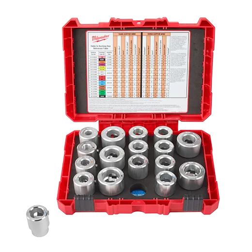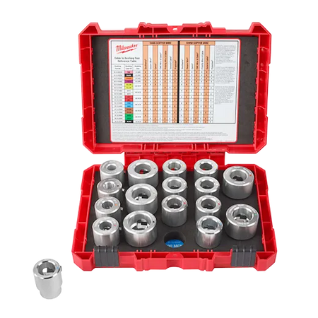 Our 1/0 AWG - 750 MCM Cu with 17 THHN / XHHW Bushing Kit is individually engineered to give you safer and cleaner strips on all sizes specific to each cable. Every cable stripper bushing features industry-standard colors to indicate wire size. Additionally, the wire size, material, and jacket type are clearly marked on each bushing for easier identification. These quick-change bushings are compatible with both the M18™ and M12™ cable strippers, allowing you to perform faster stripping on either battery platform. MILWAUKEE® M12™ and M18™ Cable Strippers provide the most consistent strips and best access.